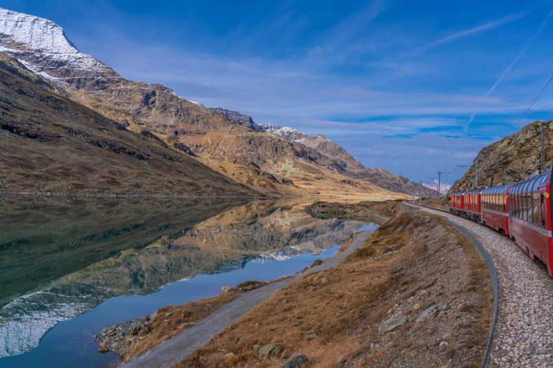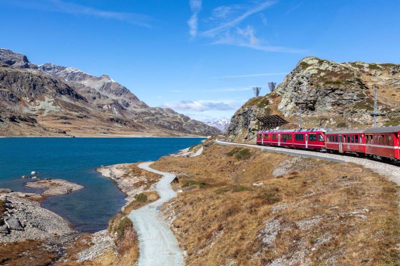 →Putovanje vozom Bernina Express sigurno je jedno od najlepših putovanja vozom na svetu. Na svojoj slikovitoj ruti Bernina Express prolazi podno impresivnih alpskih vrhova, penje se na prevoje s kojih se pružaju neverovatni pogledi, pozdravlja šarmantna sela, romantična jezera i vijuga kroz netaknutu prirodu švajcarskih Alpa, a vizure koje se izmenjuju pred panoramskim prozorima voza jednako su impresivne u svako doba godine.